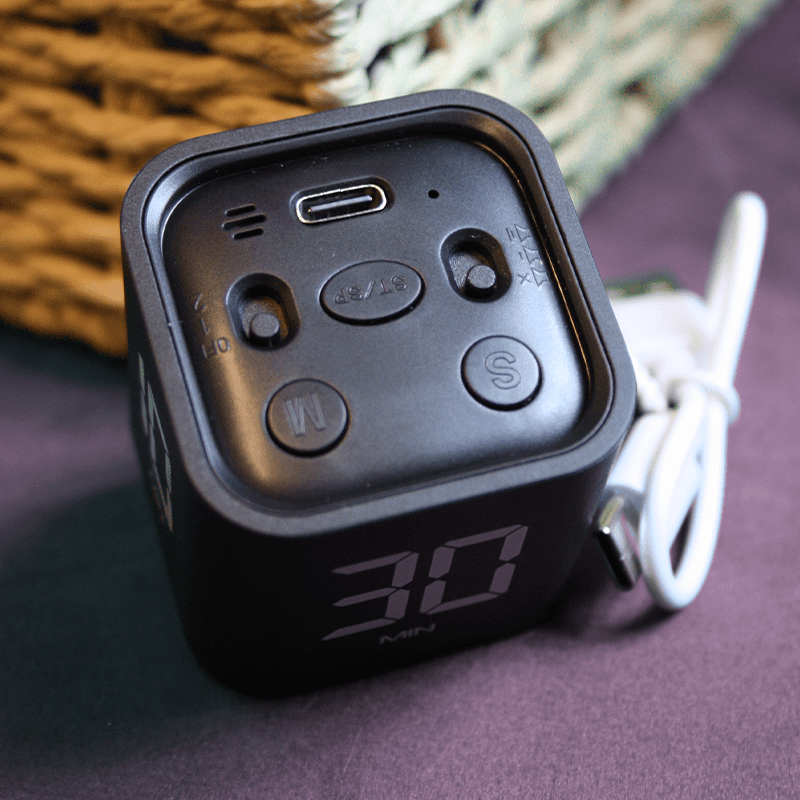 Koetko, että tarvitsisit tukea ajanhallintaan? Tässä on sinulle pienehkö kokoinen ja mukana kulkevat digitaalinen ajastin tukemaan ajan kulun seurantaa. Se on monikäyttöinen työkalu ja täydellinen digitaalinen kuutioajastin työhön, kouluun, urheiluun, toimistoon, kokouksiin, lapsille, oppimiseen, lukemiseen, ruoanlaittoon ja muuhun. Digitaalinen painovoima-anturilla varustettu pyörivä ajastin mukautuu vaivattomasti mihin tahansa tilanteeseen ja on siksi äärimmäisen hyvä ajanhallinnan työkalu. Kuutioajastimessa on aikuismainen design, siinä on säädettävät lähtölaskurit, tauko/jatka painike, mykistys ja värinätoiminnot. Tyylikkään muotoilun ansiosta ja painovoima-anturilla varustettu digitaalinen kuutioajastimemme ei ole vain käytännöllinen työkalu, vaan myös tyylikäs lisävaruste. Voit aseta se esille mihin tahansa kodissasi tai toimistossasi sisustuksen päivittämiseksi.