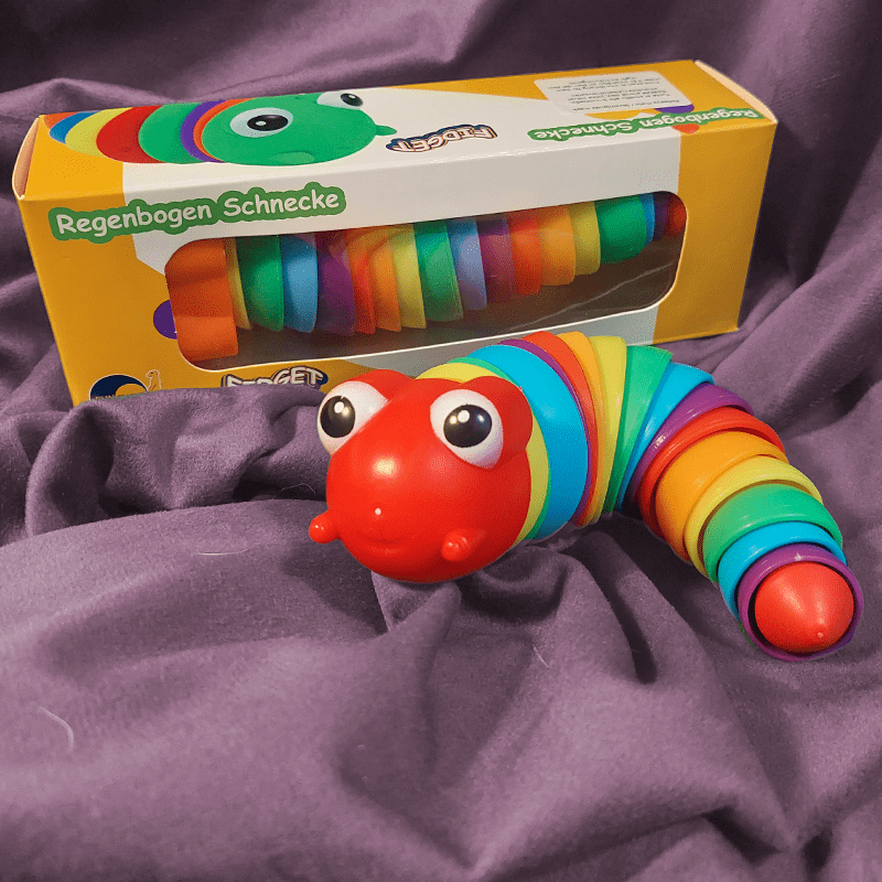 Tässä on taipuva mato, jonka osat pitävät kolisevaa ääntä, kun sitä kääntelee. Ääni on hyvin miellyyttävä ja stimuloiva. Tämä aktivoi näkö- ja tuntoaistin lisäksi myös kuuloaistia. Mato on myös reilun kokoinen, 19,9cm x 5,5cm x 7 cm kooltaan.