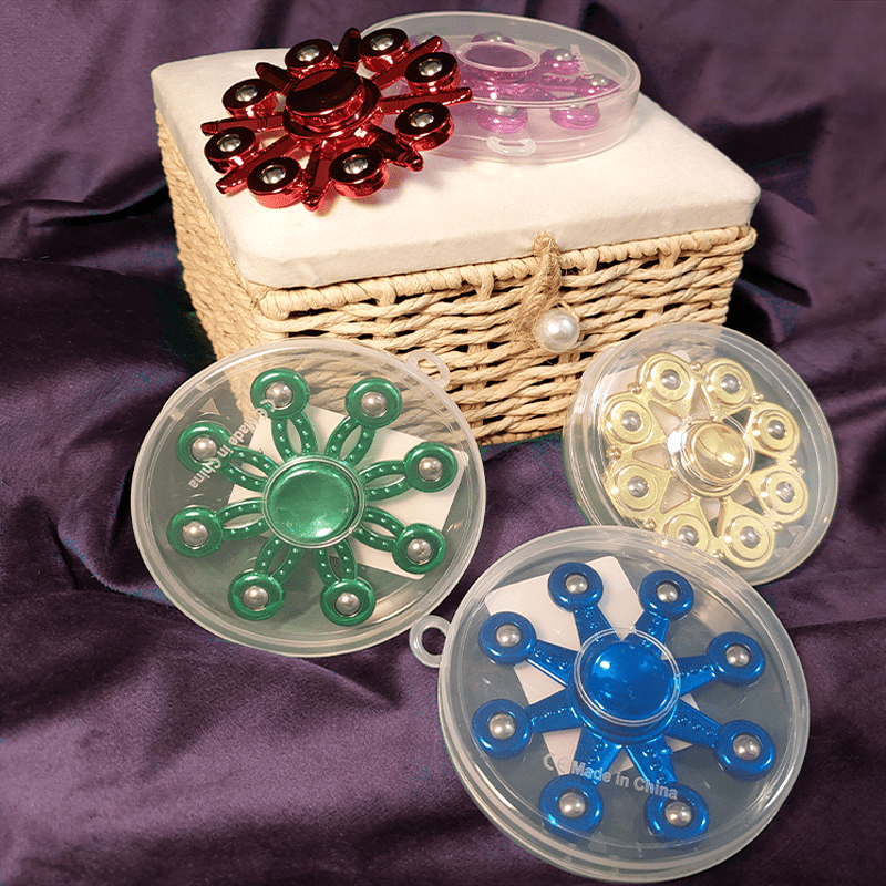 Upean väriset ja näköiset metallinhohtoiset fidget spinnerit pyörivät pitkään ja lujaa! Spinnerit tulevat kätevissä säilytysrasiassa, joten tämä on kiva antaa lahjaksi ja helppo pitää mukana matkassa. Spinnereissä on erilaisia muotoja. Väreinä löytyvät punainen, liila, vihreä, kultainen ja sininen.