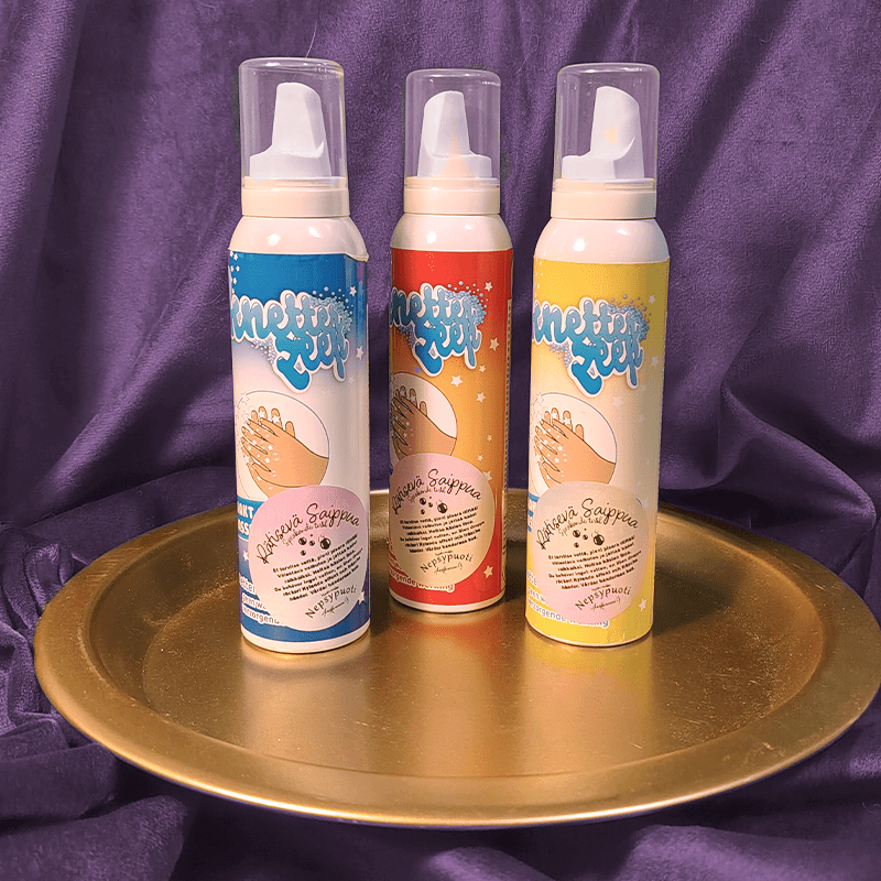 Rätinäsaippua tekee käsienpesusta juhlat! Käsienpesu ei ole koskaan ollut näin hauskaa ja kannustettua. Saippua rätisee, tuoksuu, kihelmöi ja on myös hieman kylmää. Se on vaahtomaista käsisaippuaa, joka alkaa rätisemään heti, kun hierot sitä käsiisi. Et tarvitse vettä ja tuote on dermatologisesti testattu.
