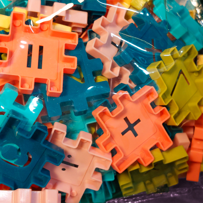 Rakennuspalikat numeroilla ja matemaattisilla merkeillä